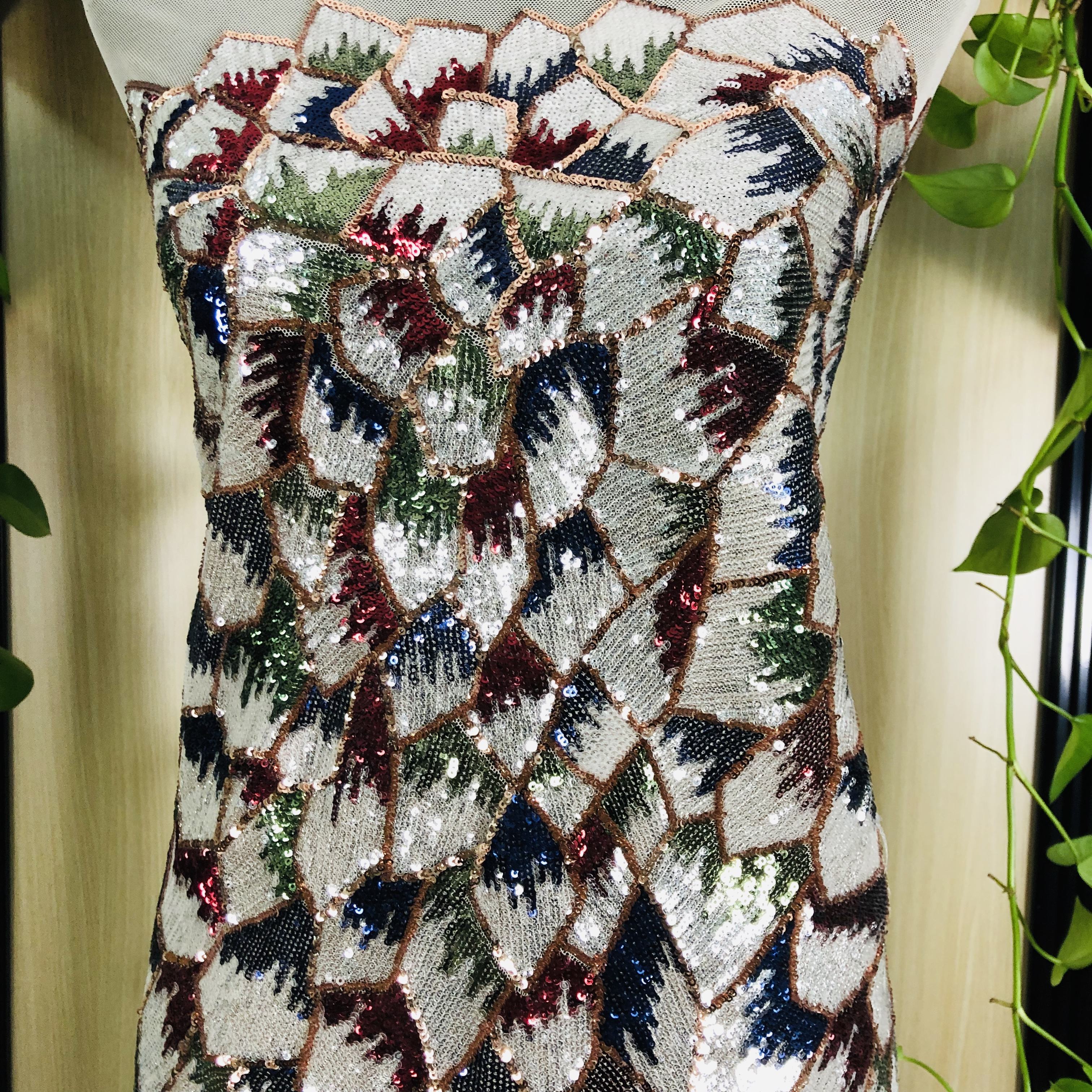 Sulaman sulaman sulaman sulaman borong popular baru yang indah dengan sulaman tiga dimensi yang digabungkan dengan hiasan berkilat, ia adalah ringan dan bernafas, sesuai untuk pakaian perkahwinan yang dibuat khas, gaun malam, pakaian prestasi panggung dan fesyen mewah. Ia menawarkan pelbagai pilihan warna untuk memenuhi keperluan reka bentuk fesyen.