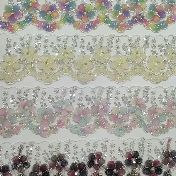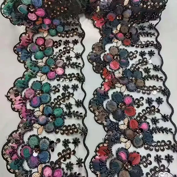 | Komoditi | Renda Bersulam Pelbagai Warna dengan Renda Sulaman Kod Bar Bunga Jala 3D Tiub Bermanik | ||
