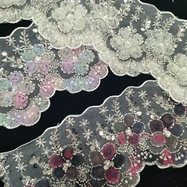Renda Bersulam Pelbagai Warna dengan Renda Sulaman Kod Bar Bunga Jala 3D Tiub Bermanik