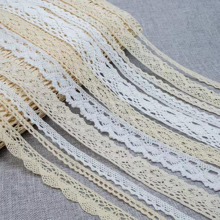 White 100% kapas sempit kapas trim renda sulaman mengait yang diperbuat daripada 100% kapas sikat, dengan teknik yang dijahit dan bersulam, ia semulajadi lembut, bernafas dan mesra kulit. Ia sesuai untuk pakaian bayi, pakaian wanita vintaj dan perabot lembut di rumah