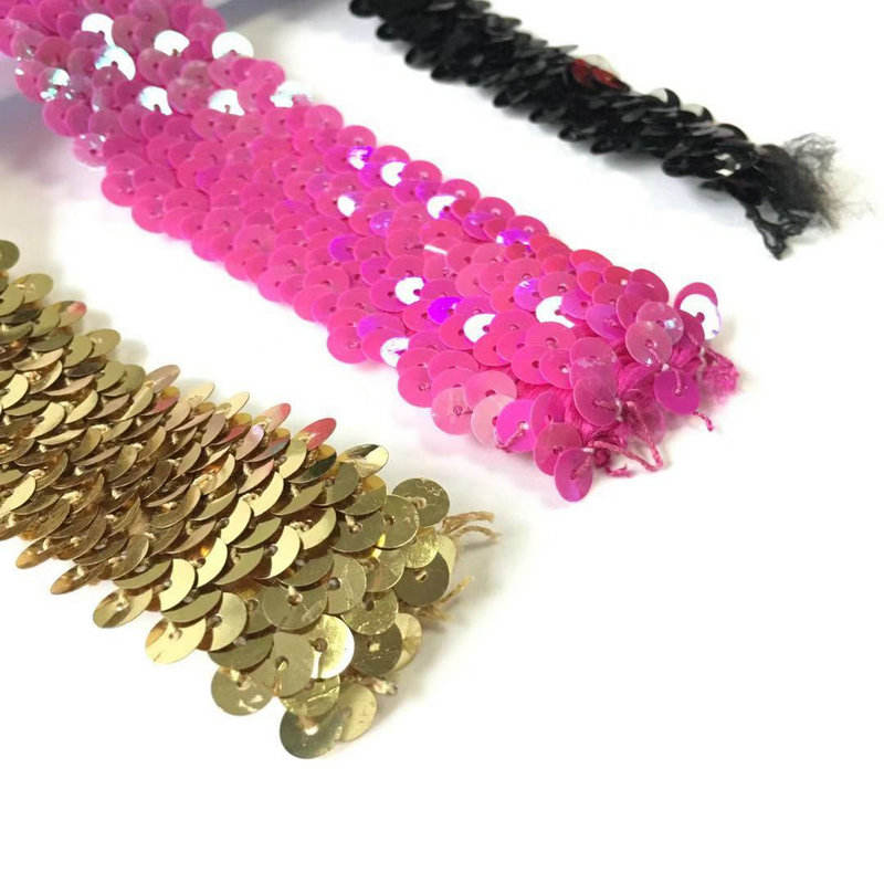 Lebar yang berlainan Bling Selesai mengikat trim renda elastik elastik yang terdapat dalam pelbagai lebar, ia mempunyai asas elastik yang dipasangkan dengan cabutan berkilat, memberikannya kilauan yang cemerlang. Ia sesuai untuk pakaian panggung, gaun malam, dan hiasan kasut dan topi