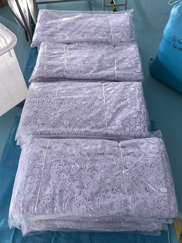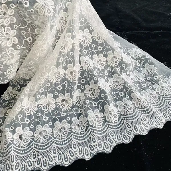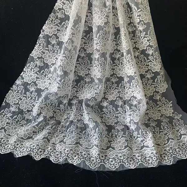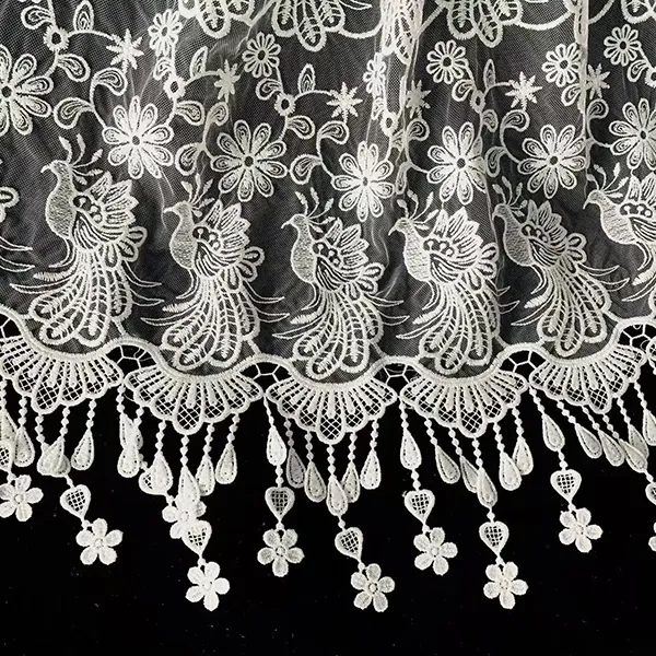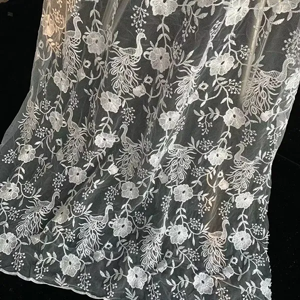 Burung sulaman dan corak bunga renda kimia sulaman kain kain kain halus ini mempunyai ciri -ciri burung yang rumit dan corak bunga, yang dicipta melalui proses sulaman yang tepat di mana asasnya larut, hanya meninggalkan reka bentuk renda hiasan. Sesuai untuk memakai pengantin, gaun malam, dan haute couture, kain menggabungkan tulle ringan dengan motif terperinci, lapang untuk rupa yang elegan dan romantis.